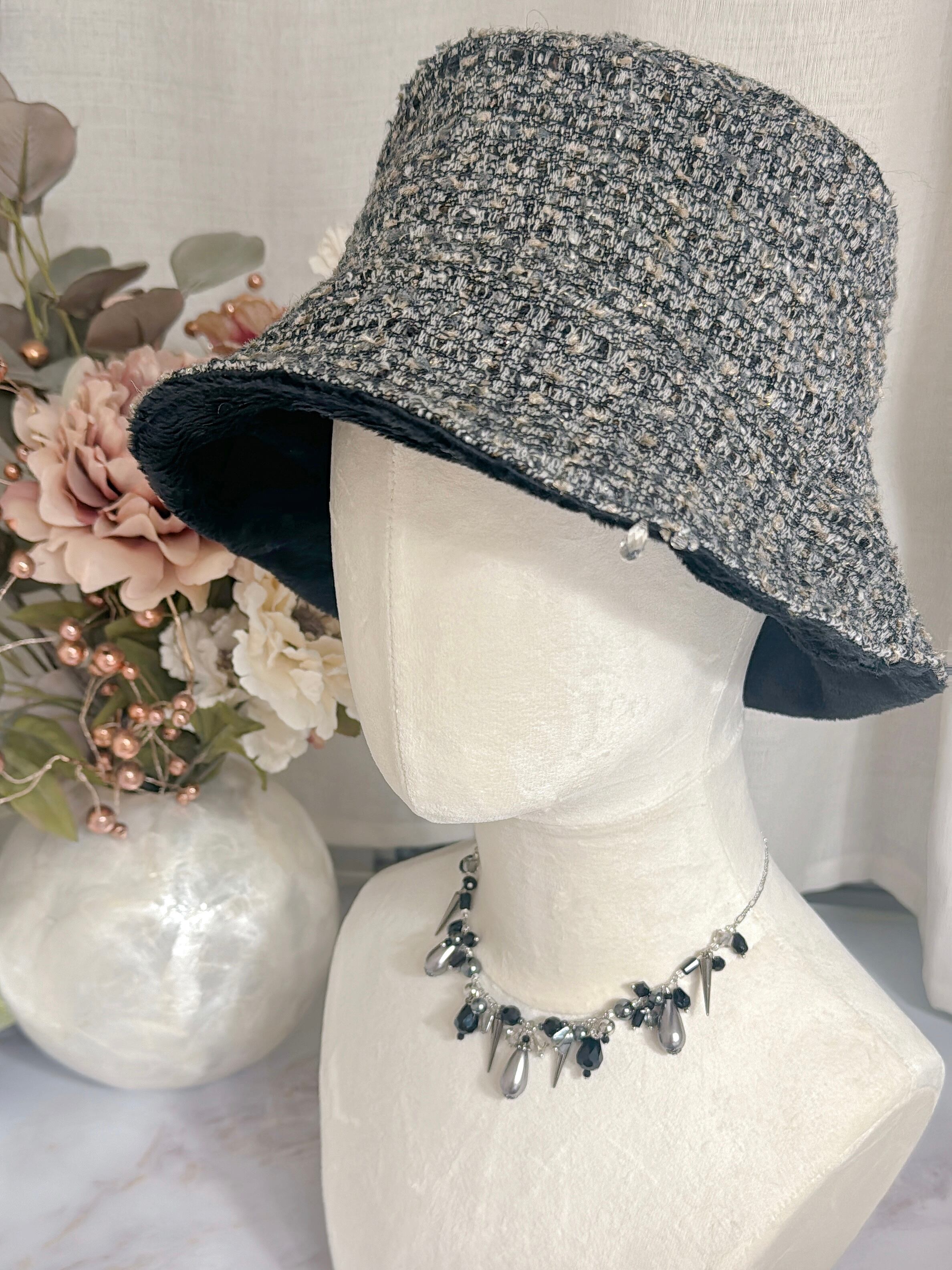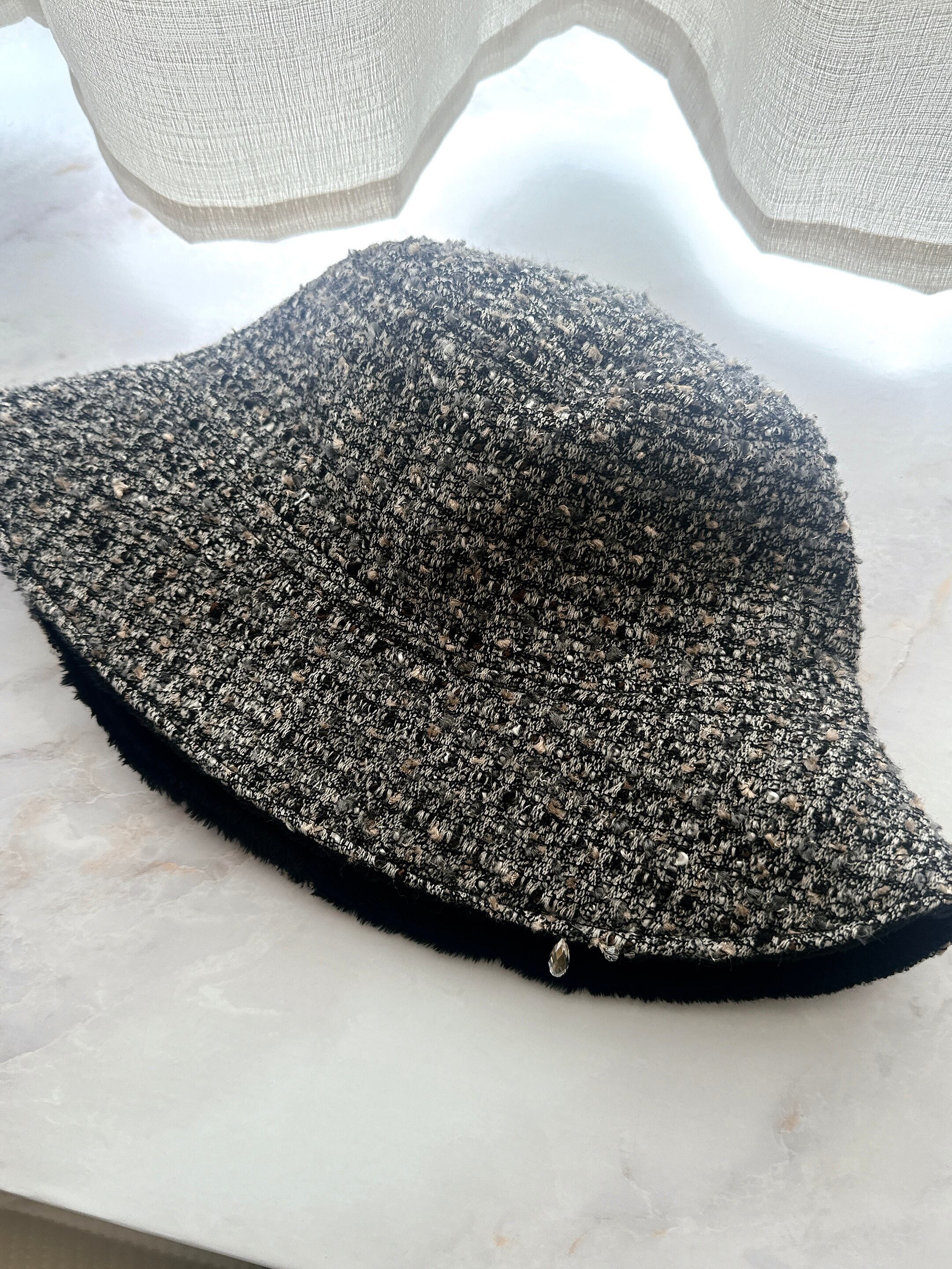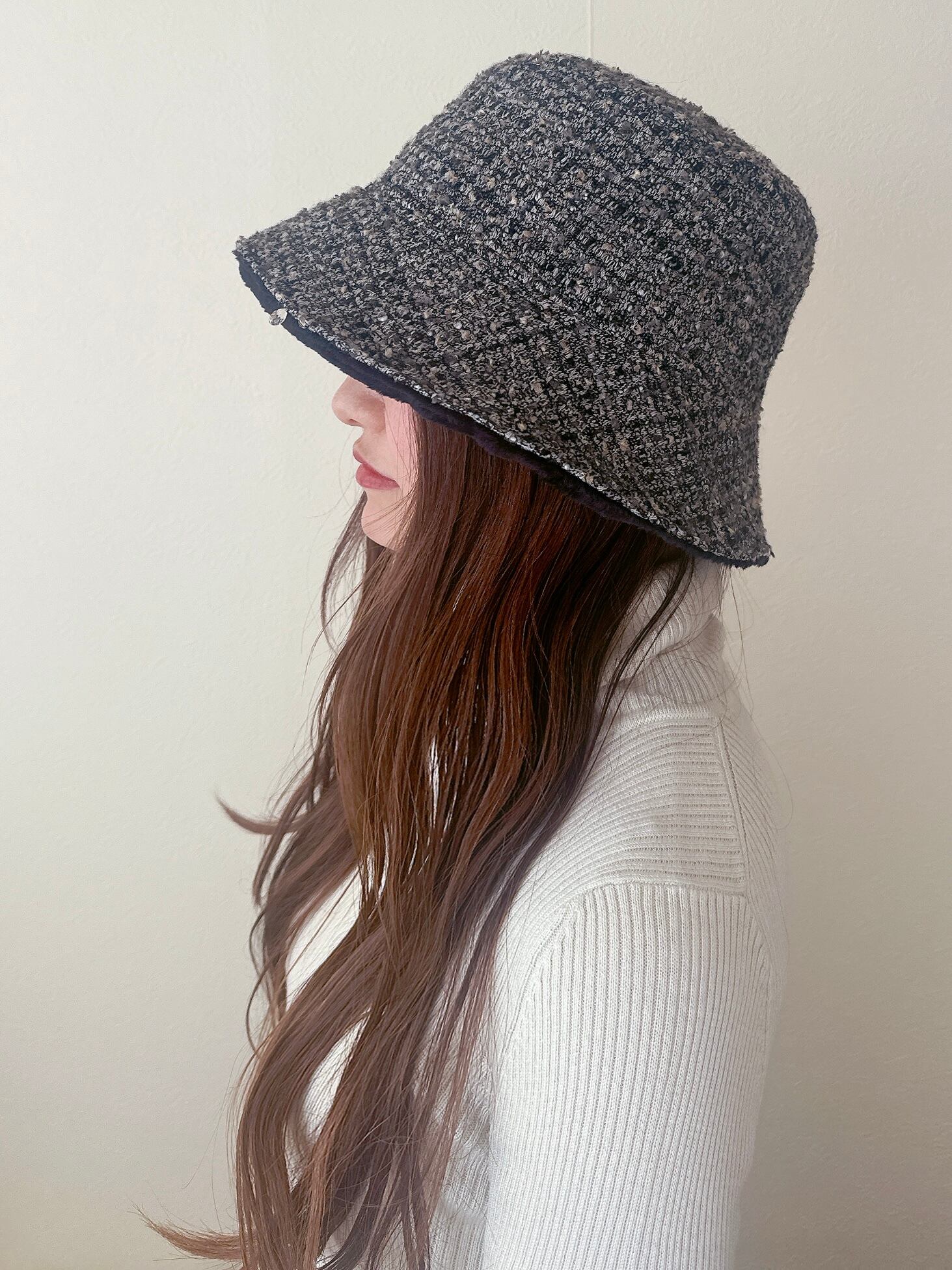 ツイード×ボアのリバーシブルバケットハット(BG)