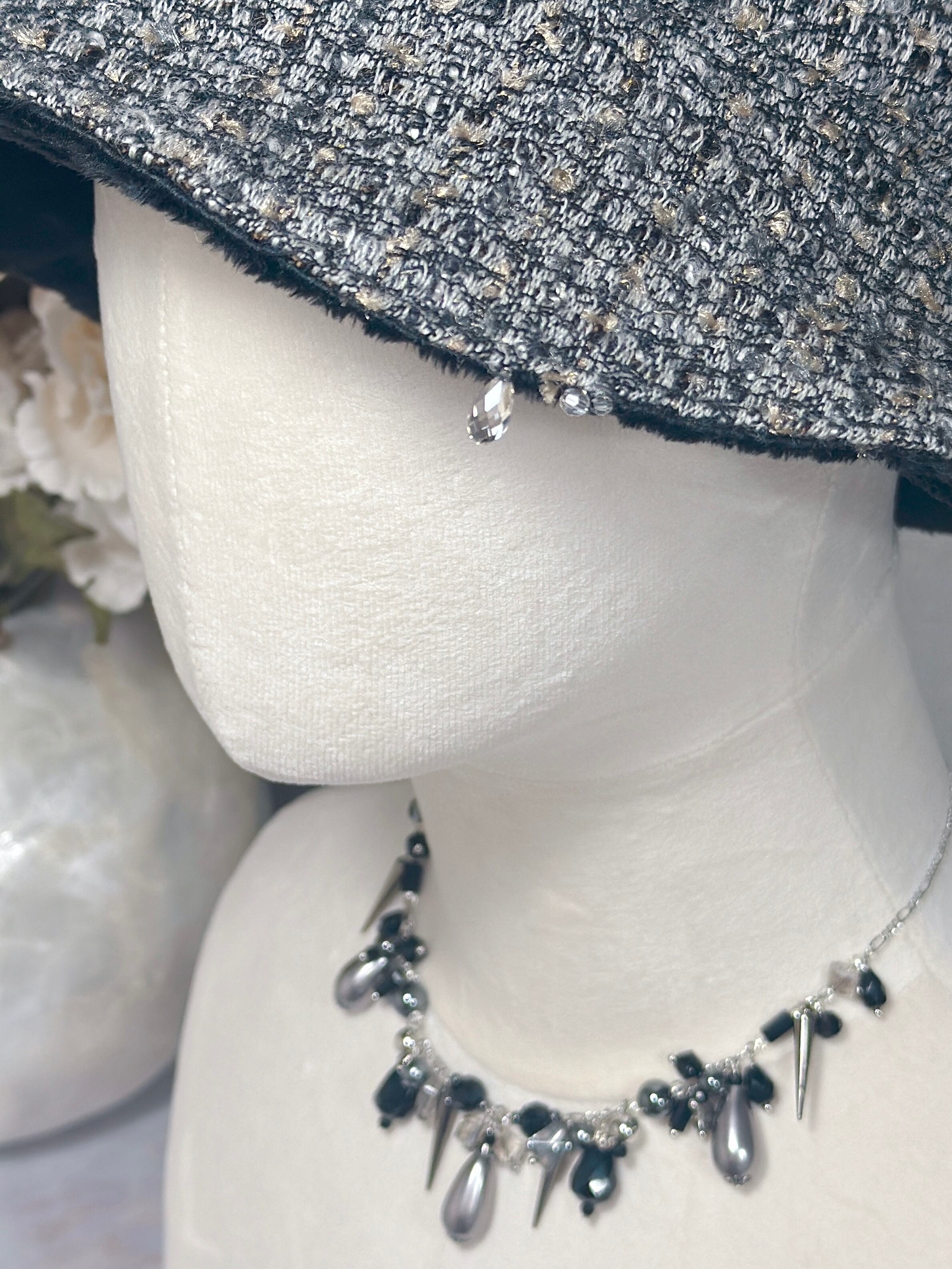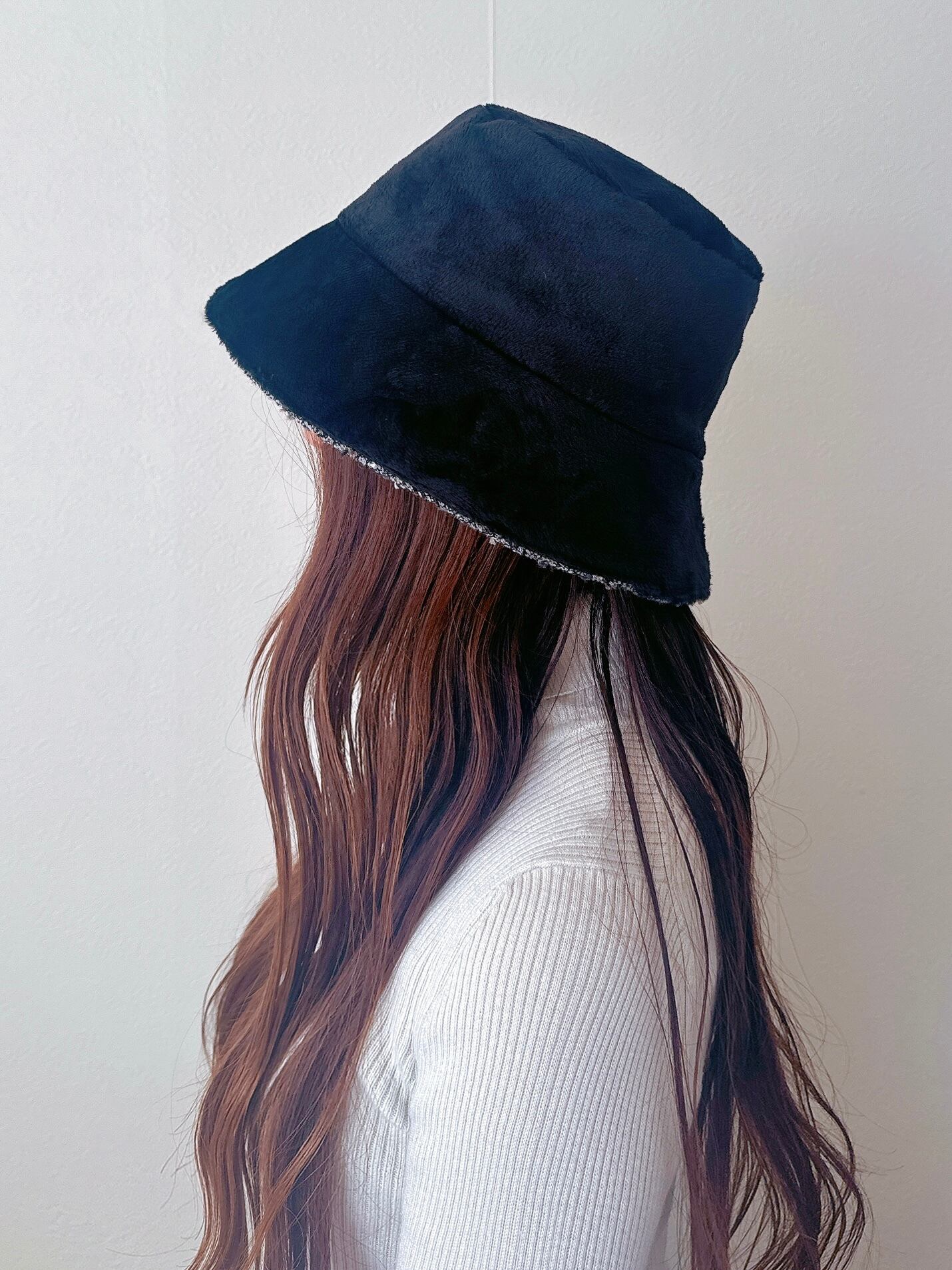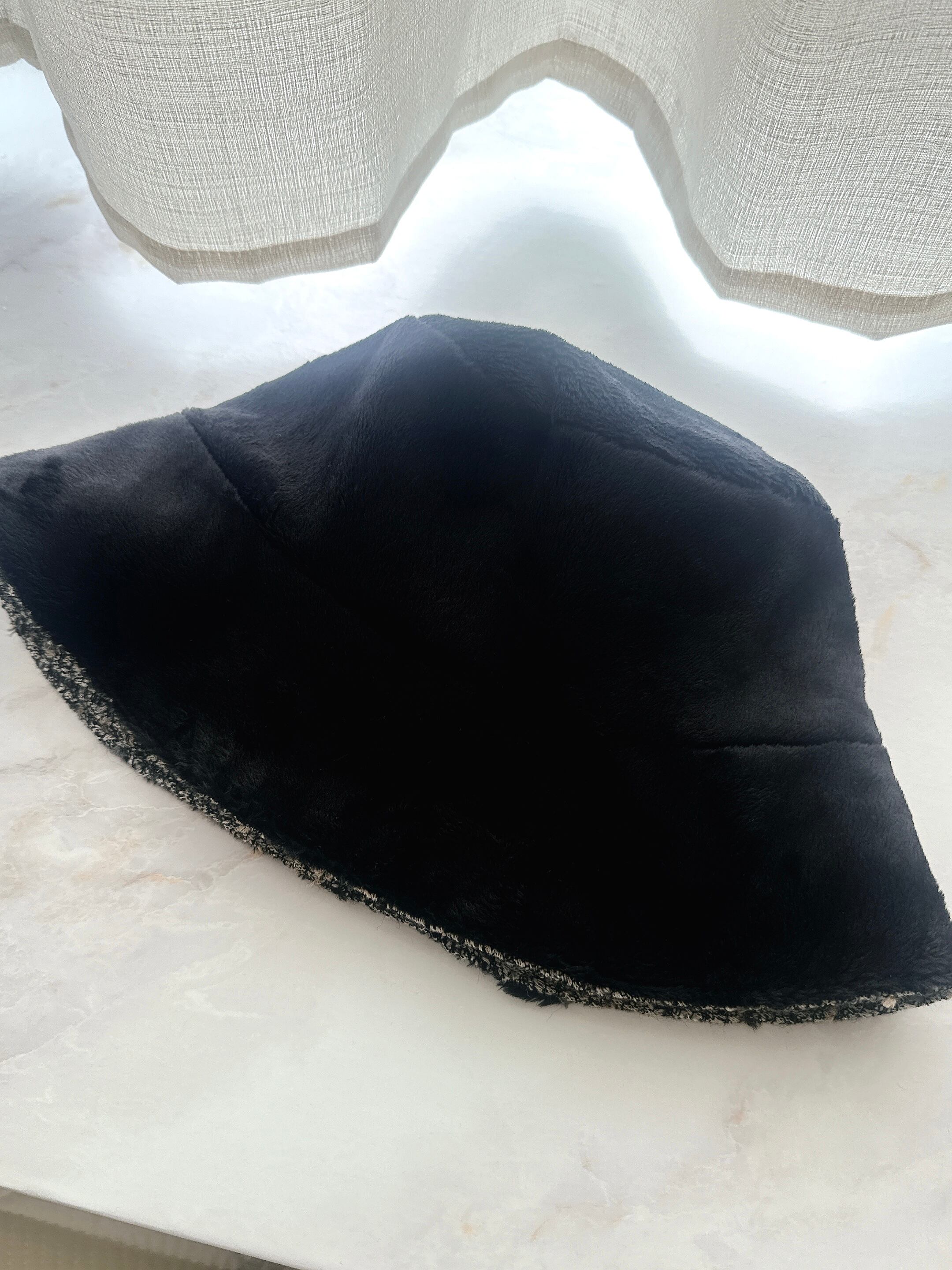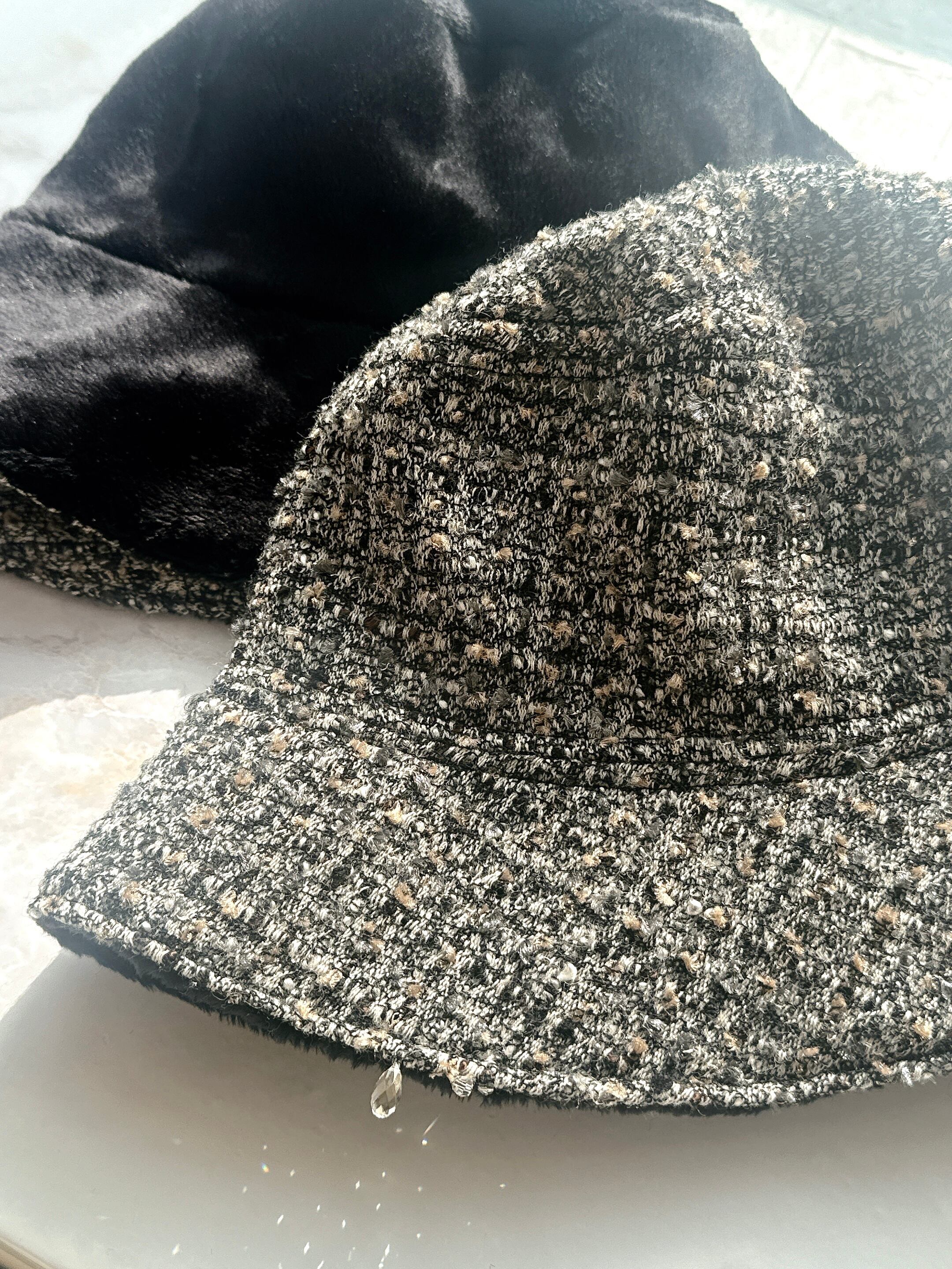 ツイード×ボアのリバーシブルバケットハット(BG)